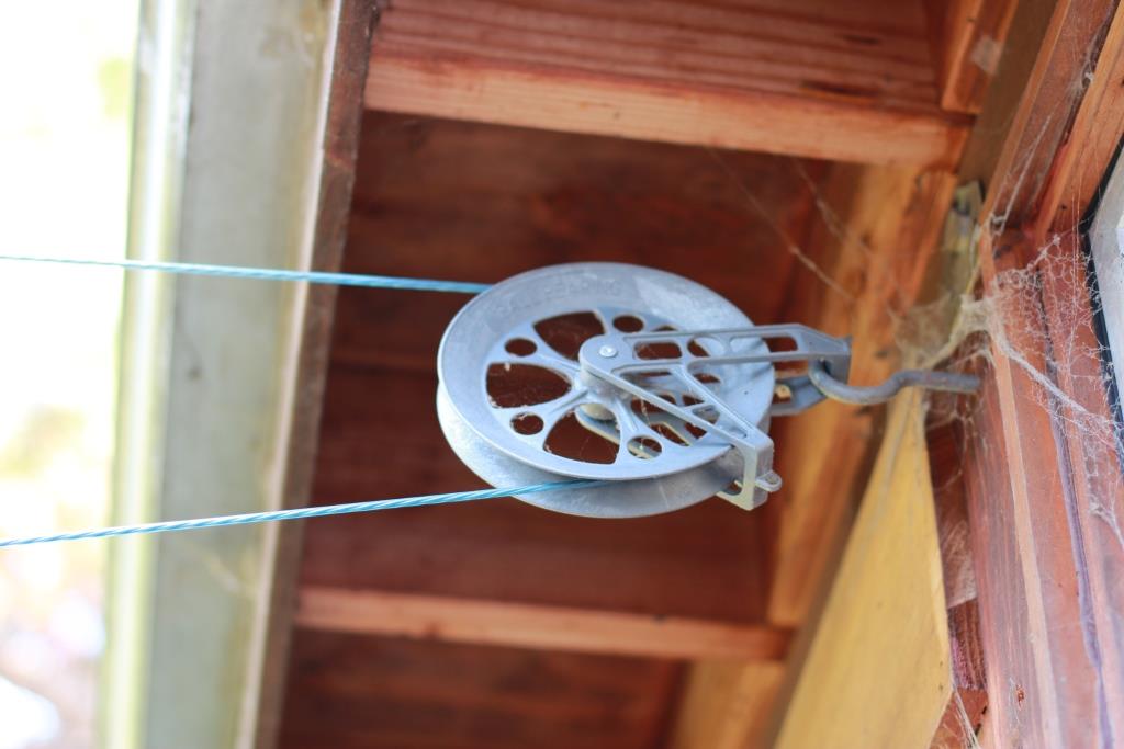 Mit dem Seilzug kann die Wäsche weitergezogen werden. Genauso wie es in Italien z.B. oft gemacht wird. Nur dass sie hier nicht über der Straße, sondern über dem Garten in der Sonne hängt.