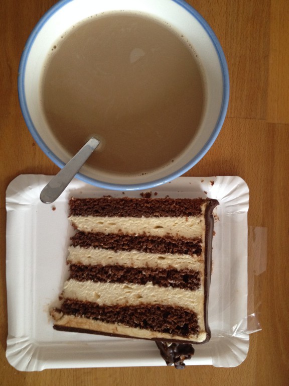 Kuchen und Kaffee an einem zufälligen Mittwoch Nachmittag. Früher Feierabend gemacht wegen krank und fertig.