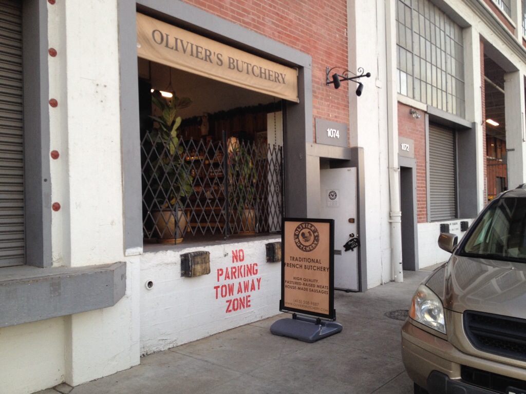 Ja Papa, es gibt hier auch Fleischer. Ein bisschen anders als in Deutschland sehen sie aus, und dieser hier ist Franzose, aber der Laden verkauft nur Fleisch und Wurst.
