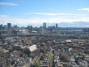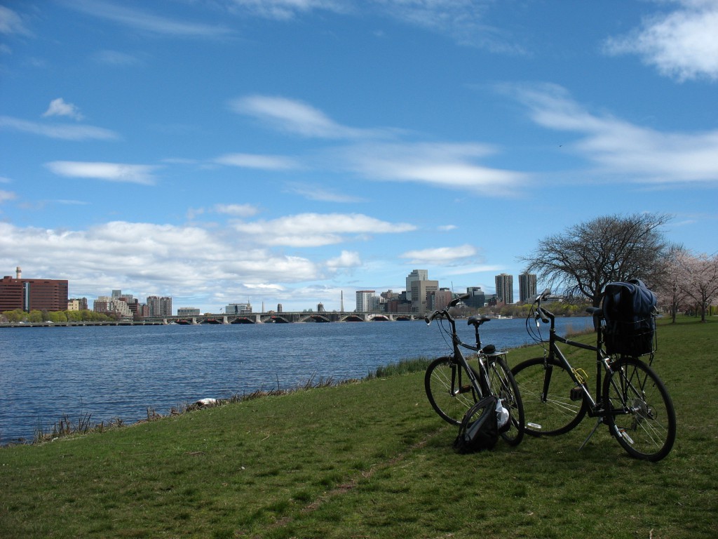 Wir überqueren den Charles River über die Longfellow Bridge und erreichen den Campus des MIT. Wir parken die Räder am Stata Center, genießen eine zeitlang die Sonne im kleinen Außen-Auditorium und spazieren anschließend eine kurze Runde über den Campus. Wir nutzen eines der Campus-Cafés zum Mittagessen und nehmen die Räder, um noch die Bostoner Skyline und das Simmons Building sehen zu können.