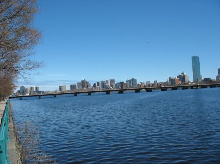 Als erstes durchfahren wir den Stadtteil Back Bay und erkunden die Straßen rund um die Commonwealth Avenue. Hier blühen Magnolien vor den Hauseingängen, Balkonkästen und Töpfe werden bepflanzt, ansonsten sind die Straßen ruhig und gepflegt. Weiter geht es in Richtung Charles River und Esplanade, eine kleine parkähnliche Anlage, die sich südseits an den Charles River schmiegt. Hier gibt es erste Fotos von der Skyline und das zweite Frühstück. Beide Doughnuts sind wunderbar.
