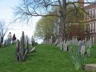 In der Zwischenzeit ist es zwei Uhr nachmittags und wir setzen unsere kleine Tour in Richtung Bunker Hill fort. Vom dortigen Turm aus, hat man einen guten Blick über die gesamte Stadt. Er gehört zum Boston National Historical Park Bunker Hill, so dass man keinen Eintritt zahlt, sondern lediglich ein Zugangsticket benötigt. Der Aufstieg ist Herz-Kreislauf-Training. Die Stufen sind vergleichsweise hoch und mit über 290 Stufen riecht es darin, wie es riechen muss, wenn täglich mehrere Schulklassen und Touristen da hoch klettern: nach Turnhalle. M ist unten geblieben und das war keine schlechte Entscheidung. Oben angekommen hat man nur vier kleine Guckfenster, die auch verglast sind. Also nur partieller Rundumblick und wenn man es nicht – dem netten Ranger sei Dank – vor der Schulklasse nach oben schafft, drängelt man sich dann vor den winzigen Fensterchen. Der Ausblick ist allerdings gut, Höhe schafft halt Übersicht.